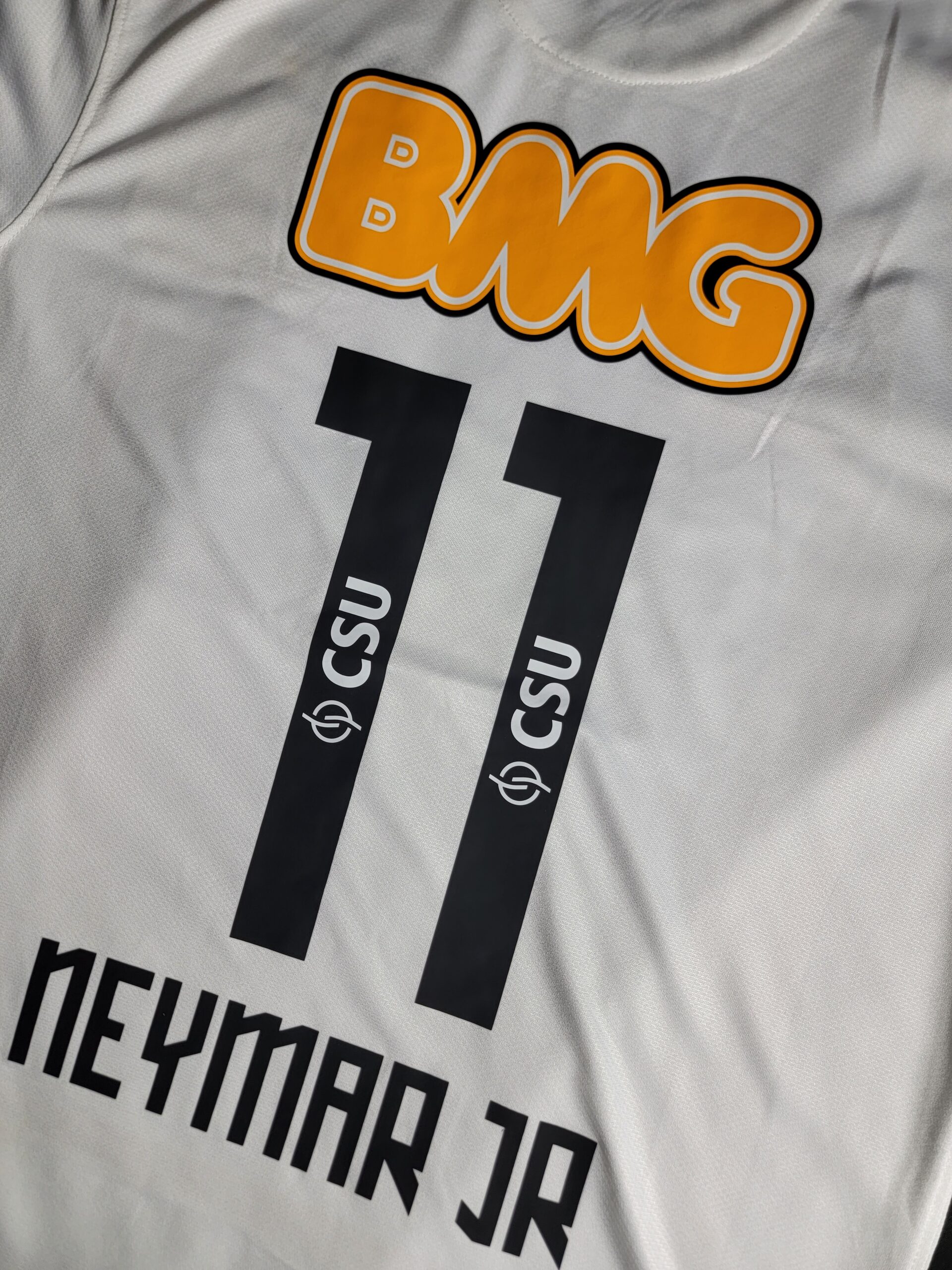 Jersey retro del Santos FC 2012, modelo blanco con dorsal 11 de Neymar Jr que rinden homenaje a la etapa dorada del astro brasileño antes de su llegada a Europa. Ideal para fans del fútbol brasileño y coleccionistas.🔥